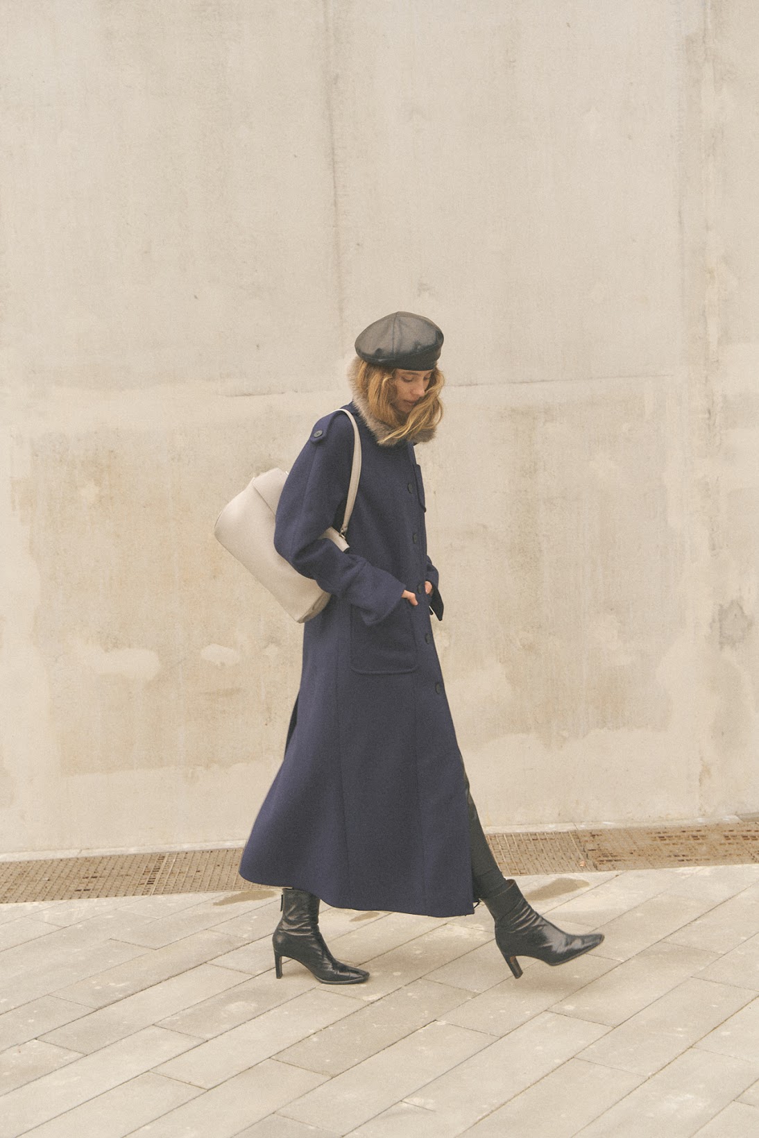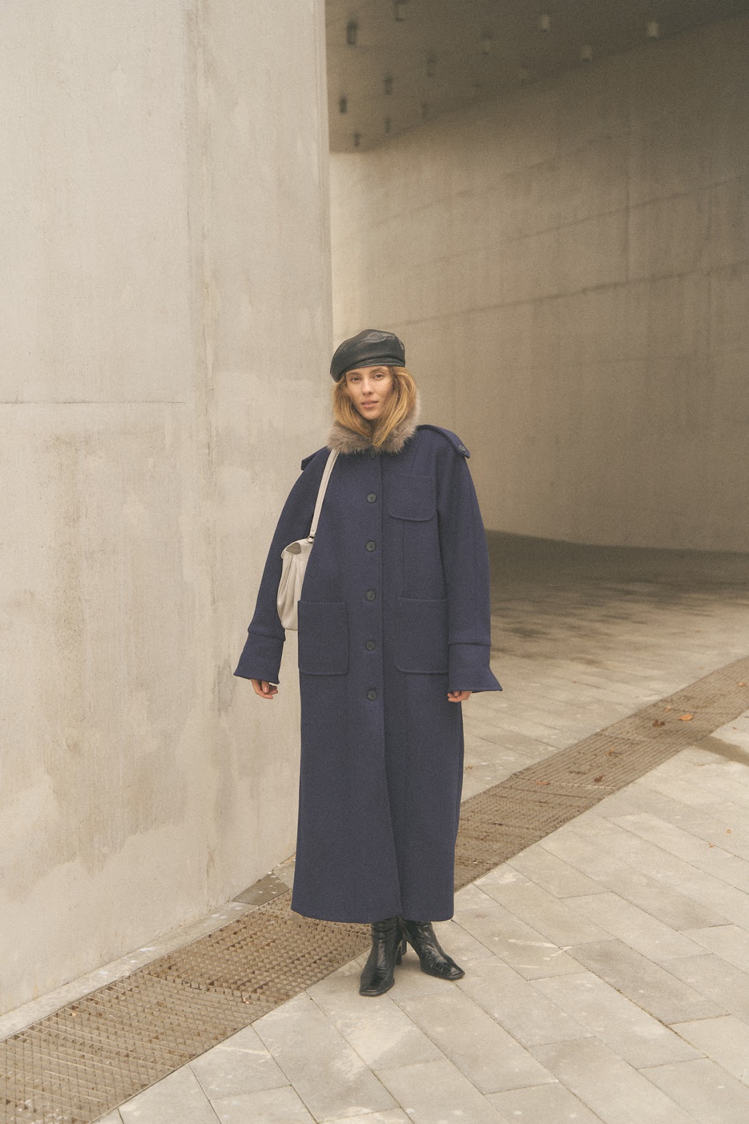 Пальто в трендовом оттенке выполнено из итальянской шерсти класса люкс в длине макси. Однобортный прямой силуэт. Накладные карманы. Двойные дизайнерские манжеты. Акцентный съемный меховой воротник из длинноворсового итальянского меха - выразительный штрих и тренд сезона.