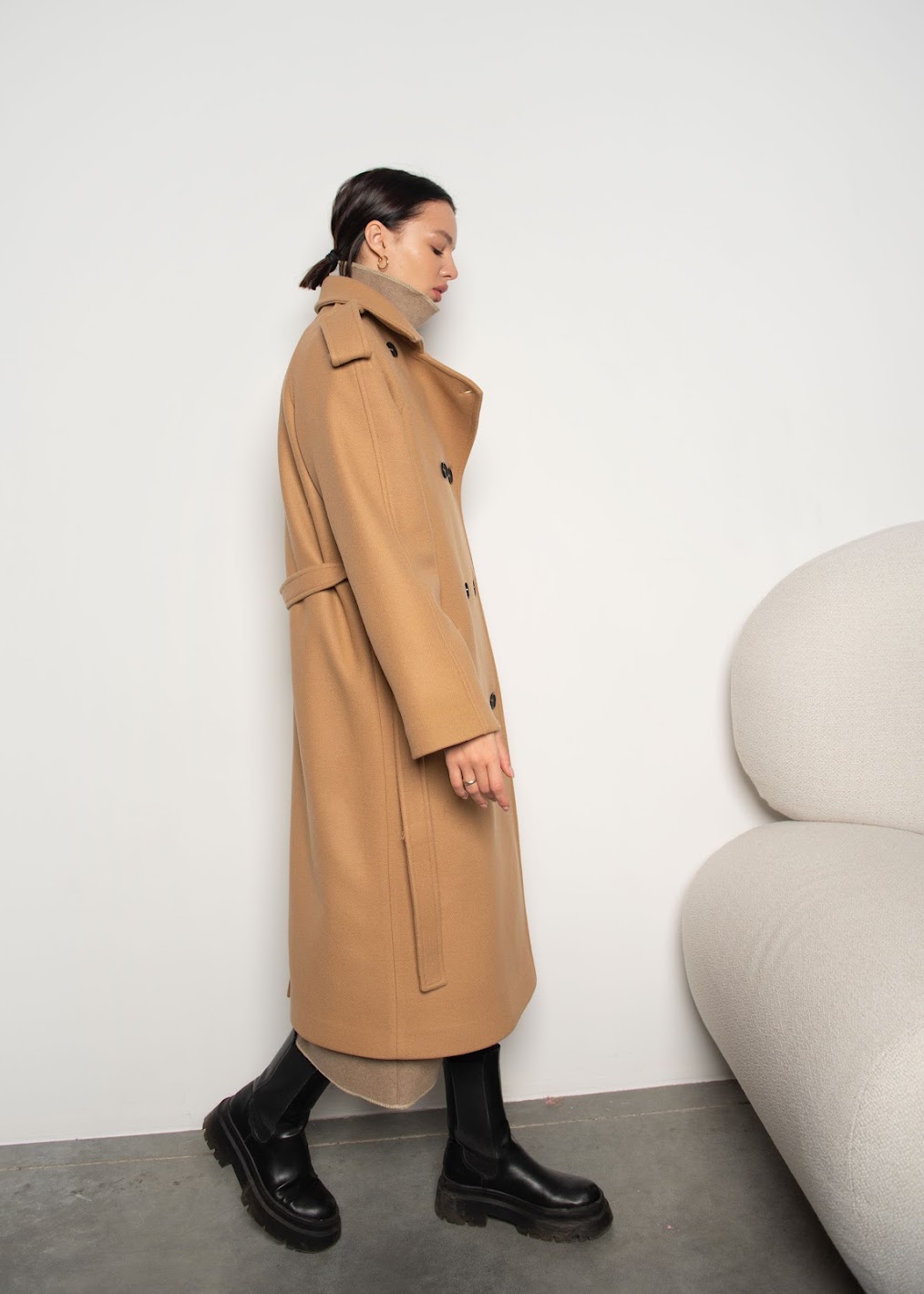 Пальто двубортное с поясом