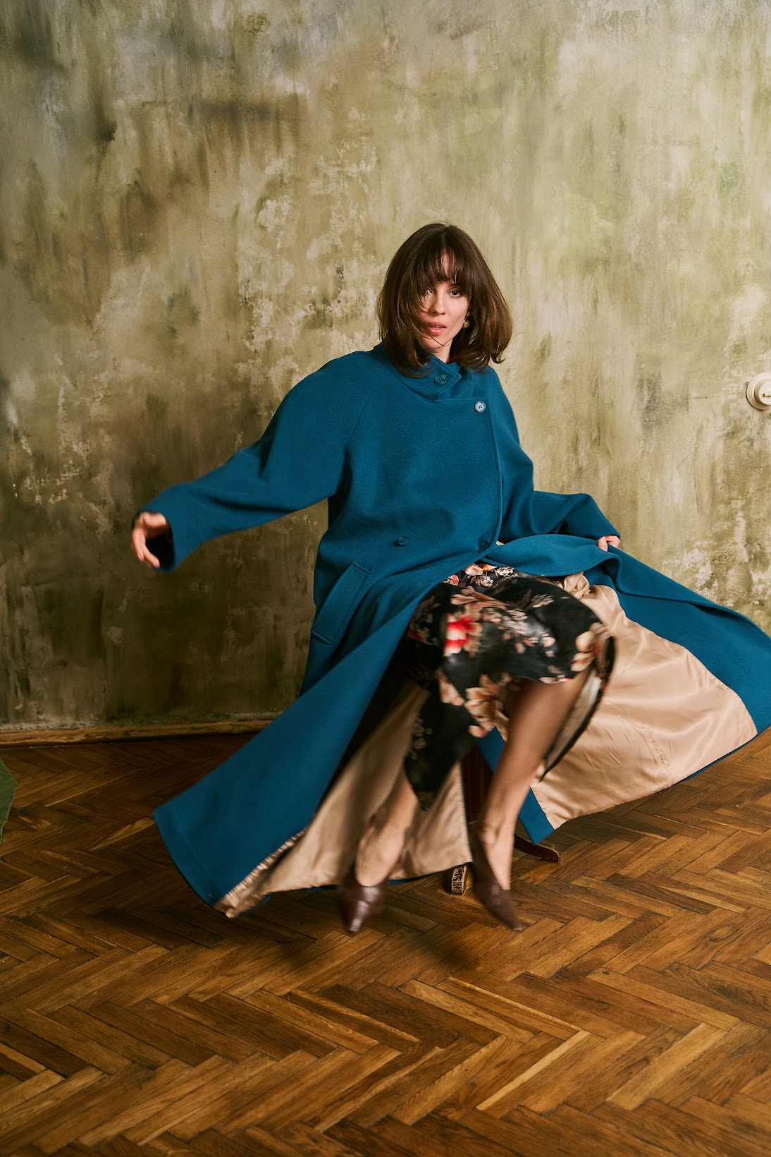 Модель выполнена из итальянской шерсти, которая отлично держит форму, оставаясь при этом мягкой, пластичной и комфортной в движении. Двубортный крой и длина макси формируют выразительный, цельный силуэт. Высокая стойка работает сразу в двух направлениях — эстетически выстраивает линию образа и функционально защищает от ветра. Рукав-реглан обеспечивает комфортную посадку и плавный переход линии плеч, сохраняя чёткость общей формы. Пальто выполнено в оверсайз-силуэте, но дополнено поясом - вы можете подчеркнуть талию или оставить более свободную подачу. Подкладка из итальянской вискозы делает изделие комфортным в носке и предотвращает электризацию.