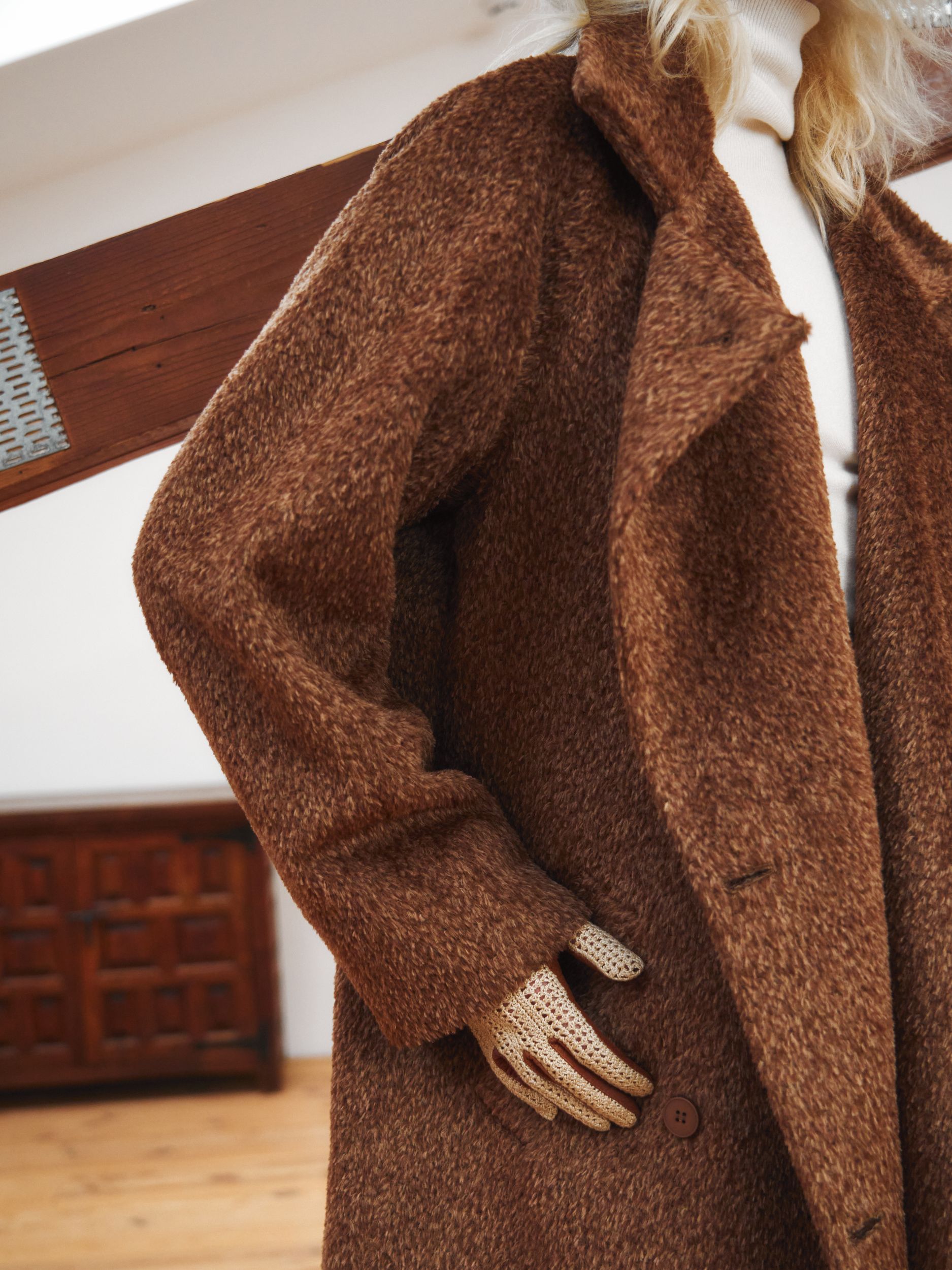 Пальто в длине макси из итальянской ворсовой шерсти альпаки