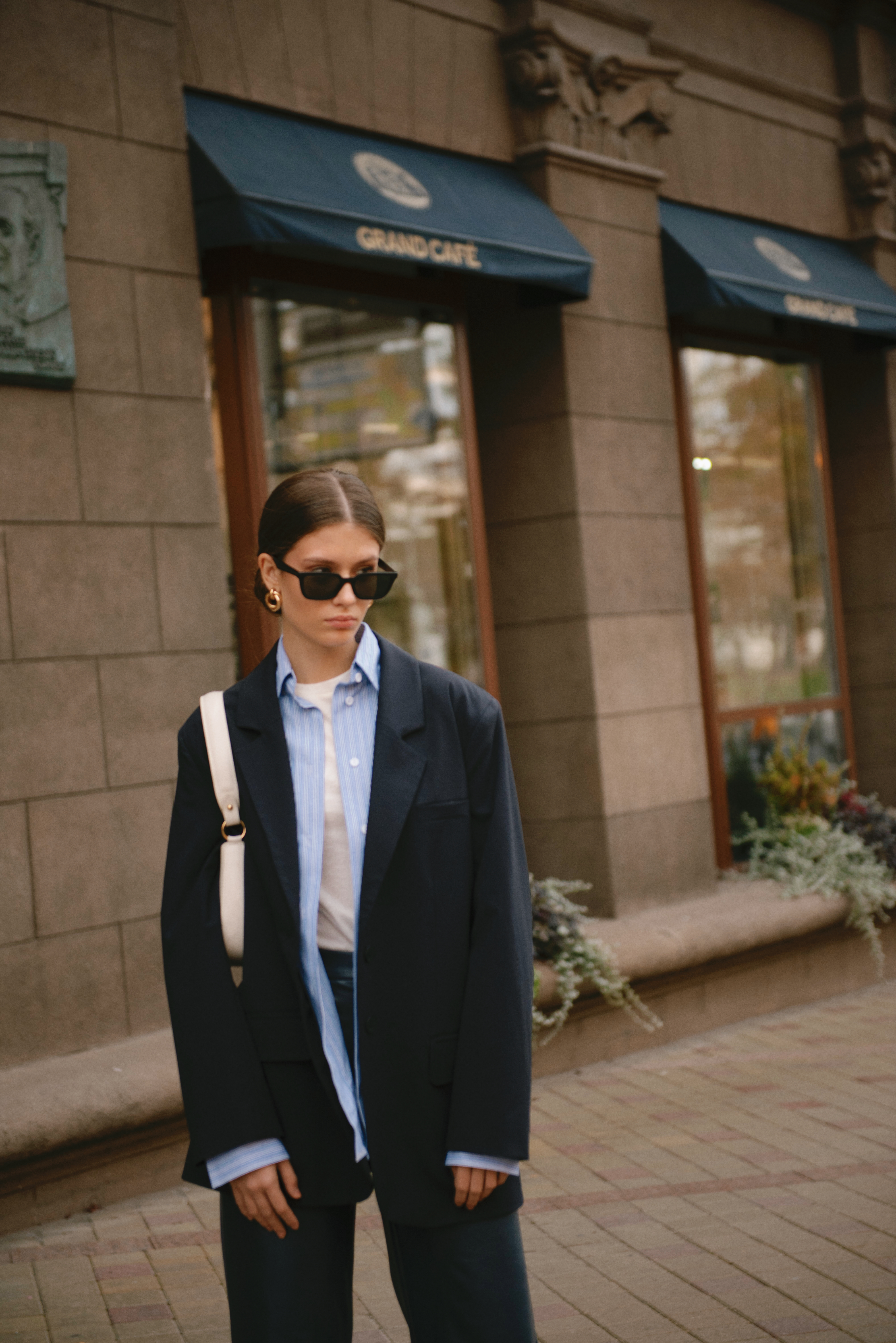Идеальный синий жакет из премиального итальянского плотного шлифованного хлопка