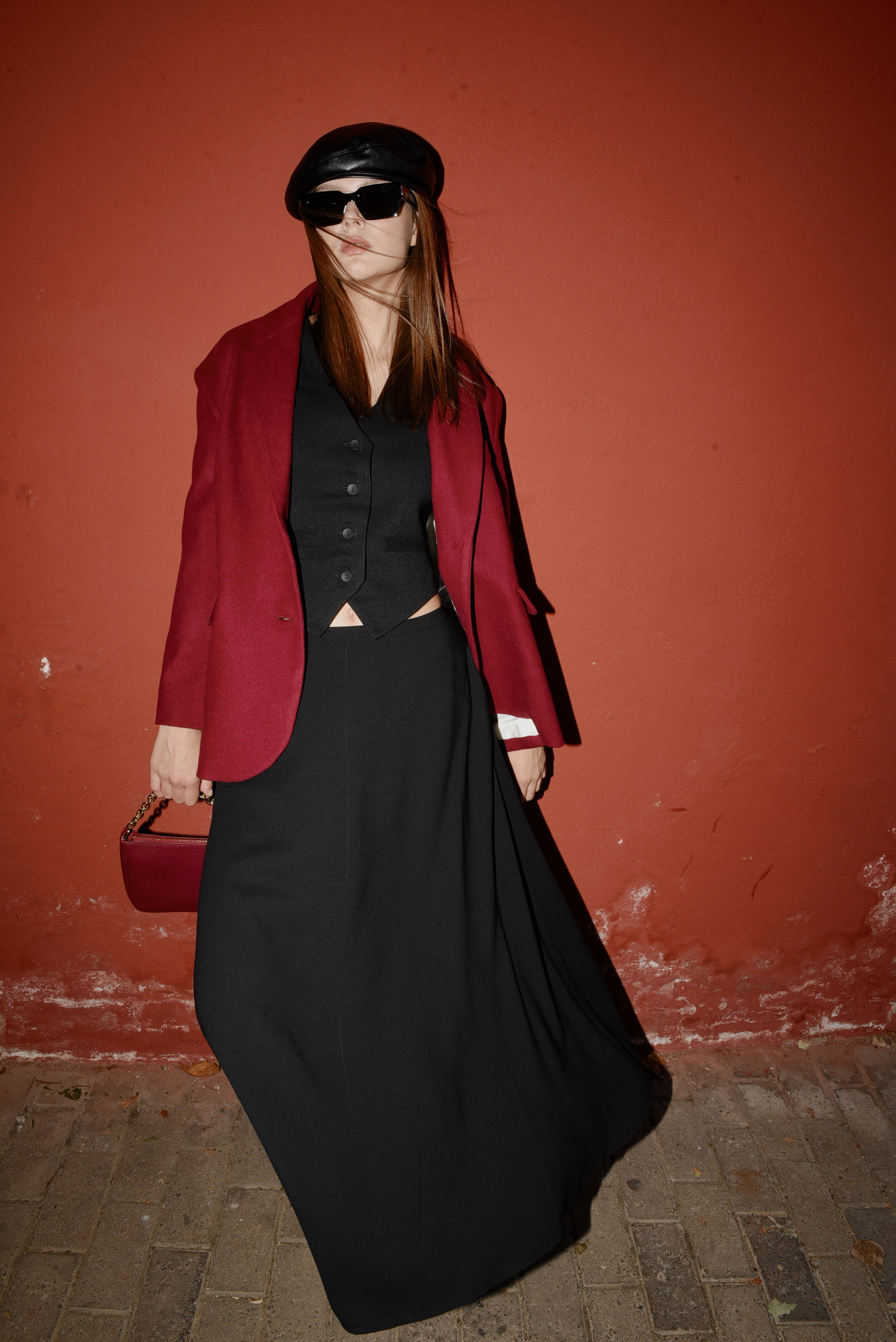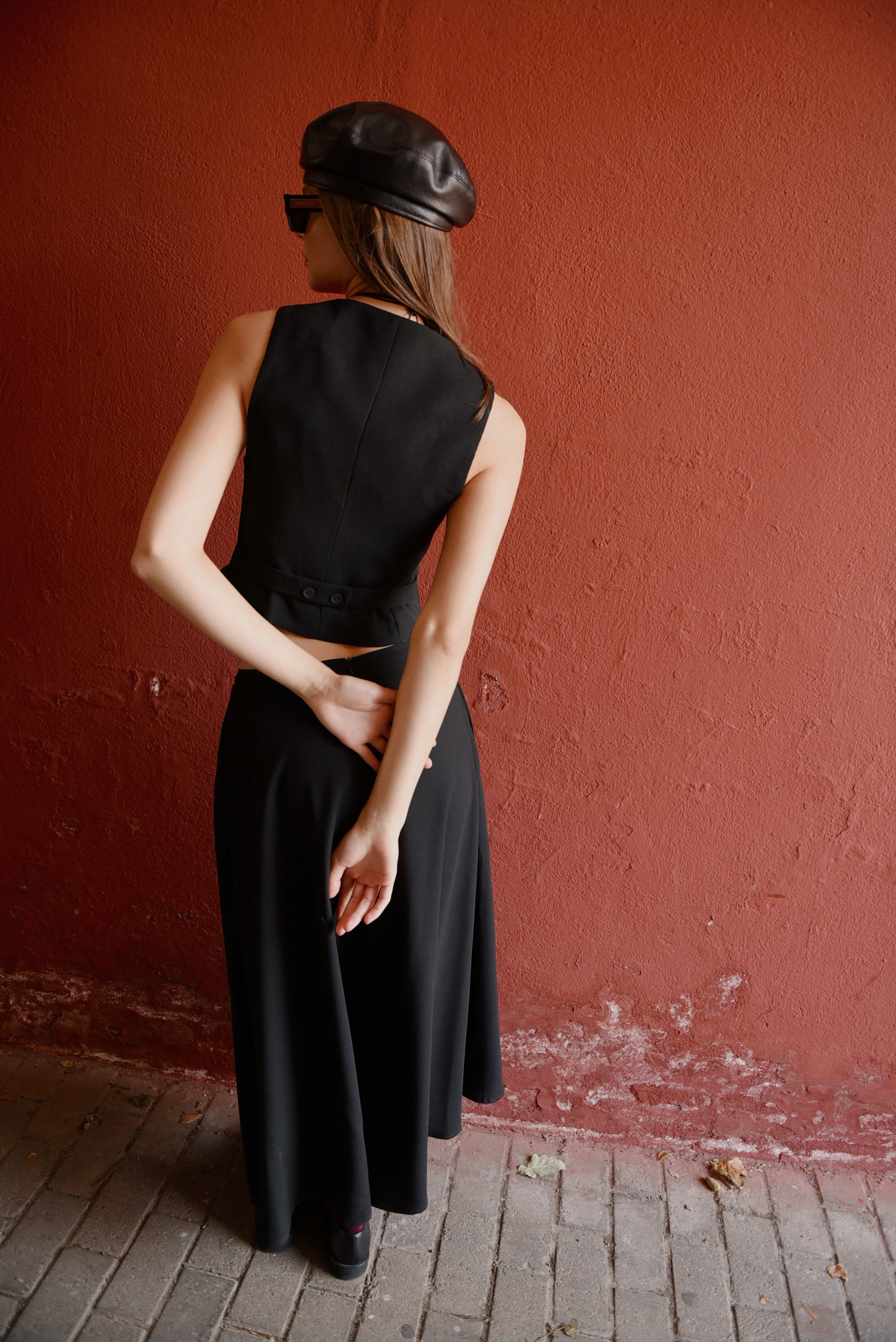 Жилет приталенного силуэта с декоративной перемычкой сзади